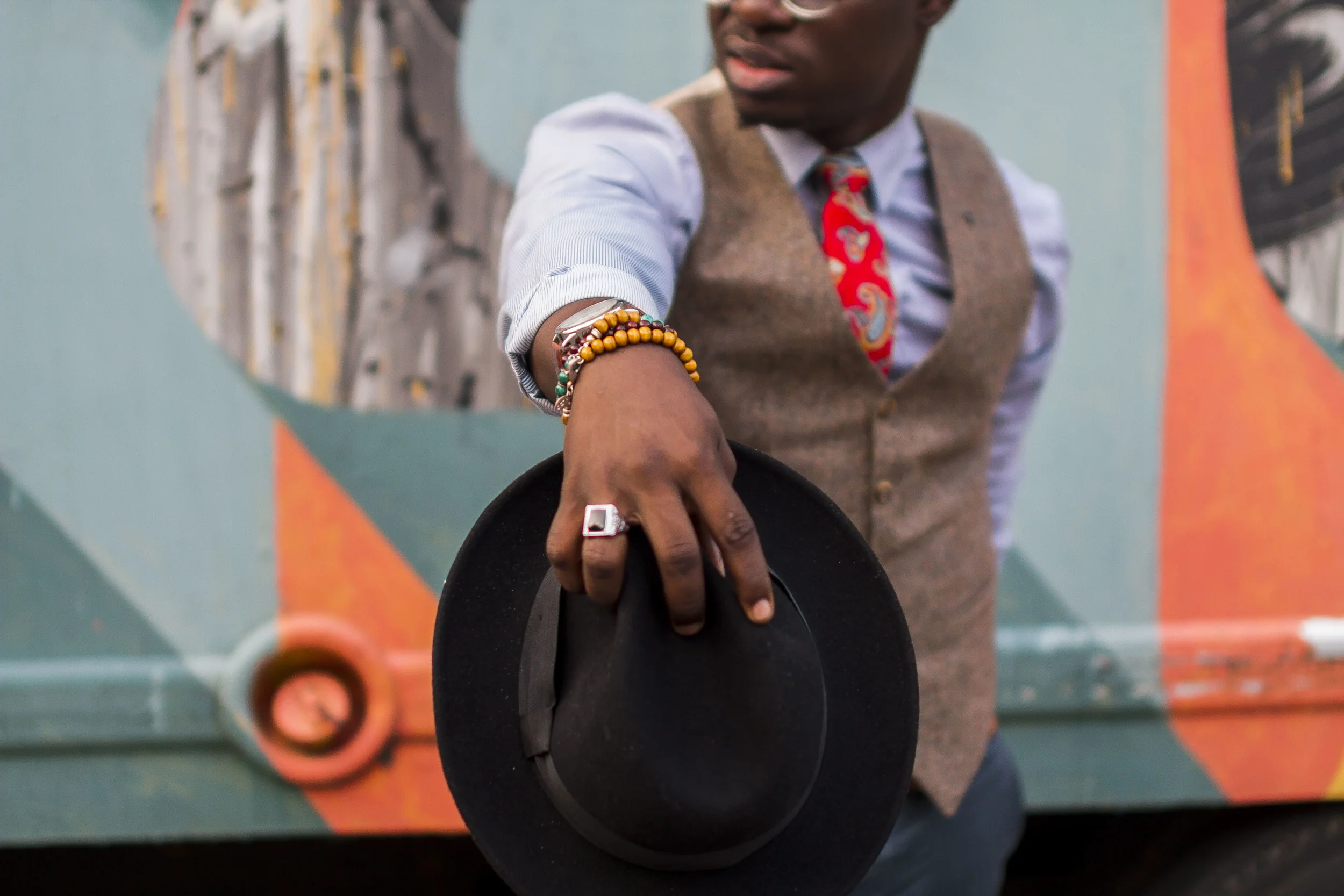 Hello everyone, I do hope you all are having a wonderful week, if not really, I want to assure you that, it will get better! We all know what the thrift experience is like; sometimes we are lucky to find cool stuff, and other times, it is frustrating to either not find your size or not even find what you are looking for. Well, my twill Vest is one of the thrift blessing, it is actually a piece from a suit i got last week and I find it a blessing that it fitted just right. Same goes with the paisley print red tie which obviously well alongside with the whole outfit. Pay attention to this; red rocks perfectly well with any shades of brown especially the kind of shade i have on. Accessories makes a whole lot of difference too, like the hat i have on. Well go ahead and enjoy your visit here as you scroll through the images.